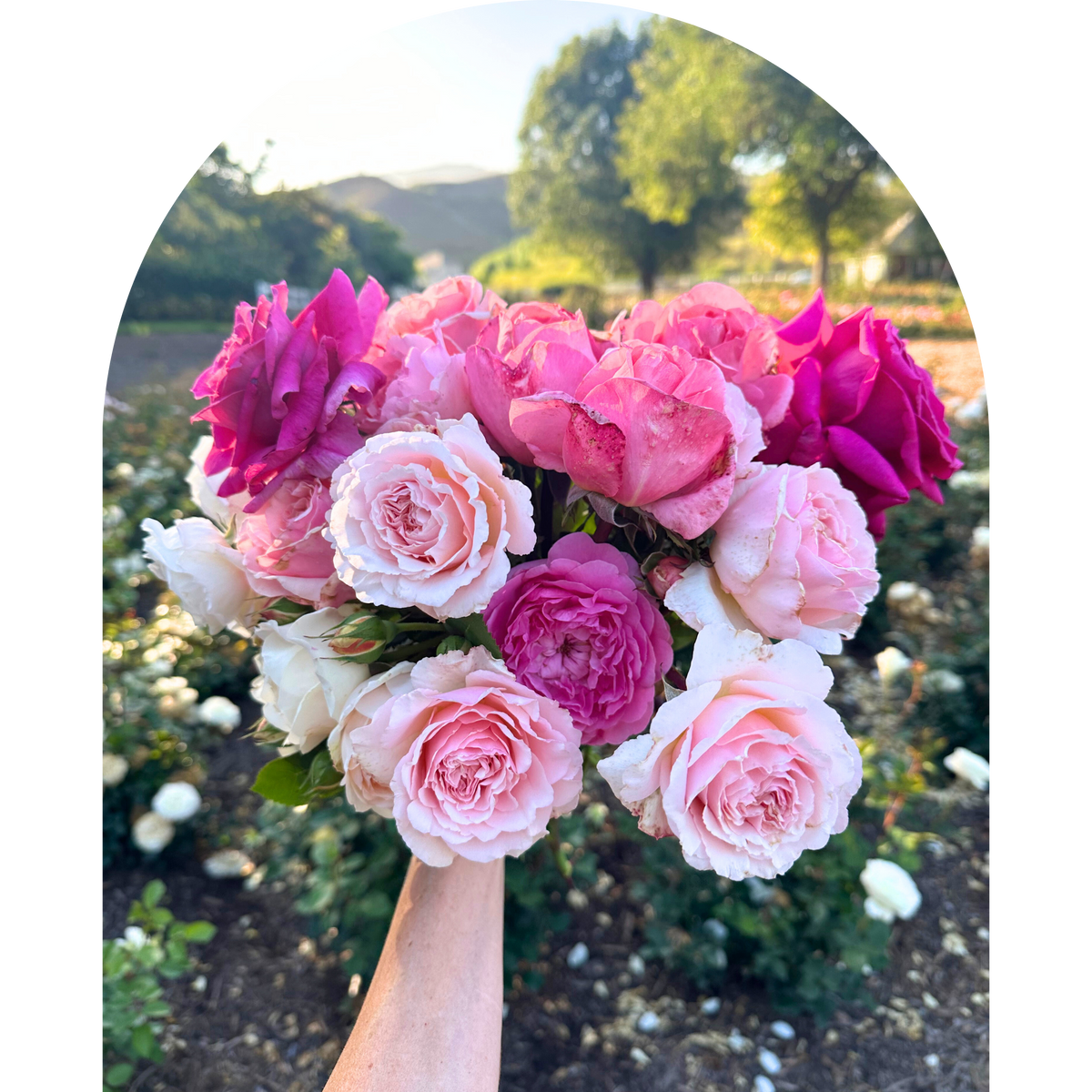 In 2023 we began to offer more curated offerings from our Founder, Gracie. She interacts with our wonderful rose community online and in person when possible. She creates both rose bouquet and rose bush packages for our clients. At any given time Gracie is working on more than 50 new products and always with our clients' wishes at the heart of her choices.