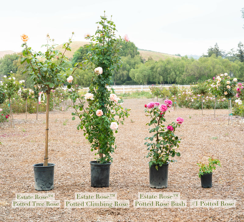 Looking to cover an arbor, fence, or trellis? Our Estate climbing roses are substantial, vigorous specimens, standing 48”–60” tall with mature, pliable canes (unless noted as a 30” climber). They're ready to be trained and secured to your structure right away.