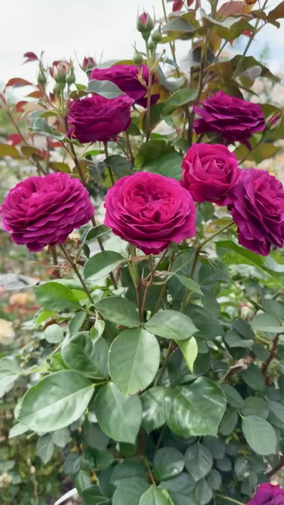Celestial Night™ is a mesmerizing Floribunda rose bred by Christian Bédard and introduced by Weeks Roses in 2017. With its deep plum-purple blooms and contrasting raspberry reverse, this striking variety features globular, old-fashioned cupped flowers that retain their rich color right up to petal drop—bringing bold, dramatic beauty to beds, borders, and cutting gardens.