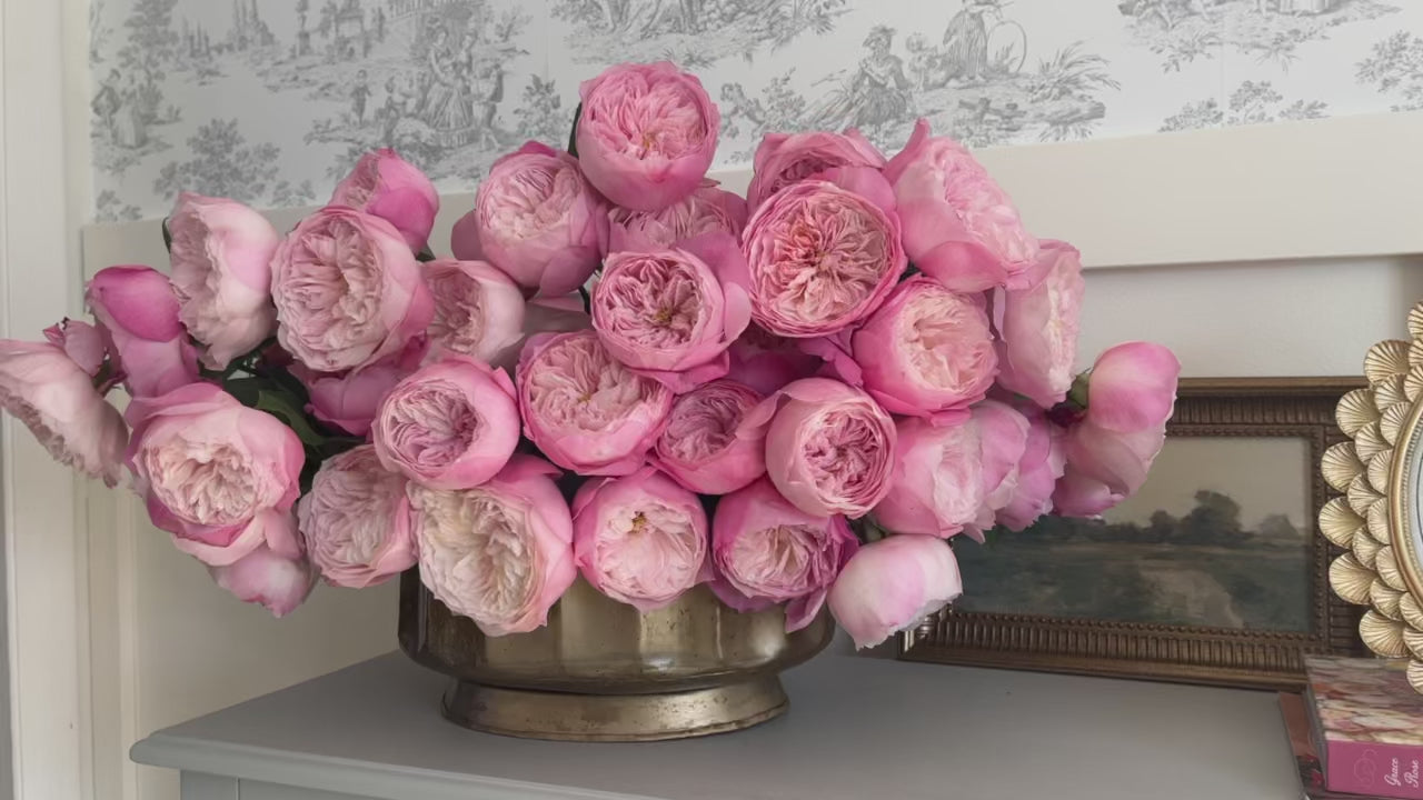 Constance™ is the crown jewel of our David Austin rose collection. With its enchanting cream and blush pink petals, it unfurls like a delicate watercolor masterpiece, each hue swirling harmoniously together. This rose embodies the essence of a fairy tale, reminiscent of layers of sumptuous silk tulle cascading in a grand ball gown. Its intoxicating fragrance wafts through the air, a delightful bouquet of fruity aromas that evoke the freshness of ripe apples and juicy pears. With its graceful, soft stems, Constance beautifully drapes over the vase, adding an air of elegance and charm to any arrangement.