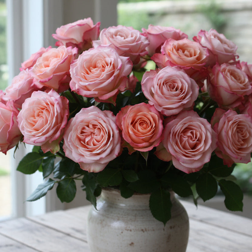 - Your roses are freshly cut to order by our passionate and skilled growers, who tend to each bloom with love and expertise. Each stem is processed with care and nestled in specially designed packaging that ensures their safe journey to you. To maintain the vitality and beauty of the roses, the thorns are intentionally left intact, adding a touch of natural elegance. Our farm takes pride in empowering women, with over half of our dedicated team being female. We invite you to explore our unwavering commitment to enhancing the overall well-being and success of our workers, as they bring the beauty of these roses to life. Read more here.