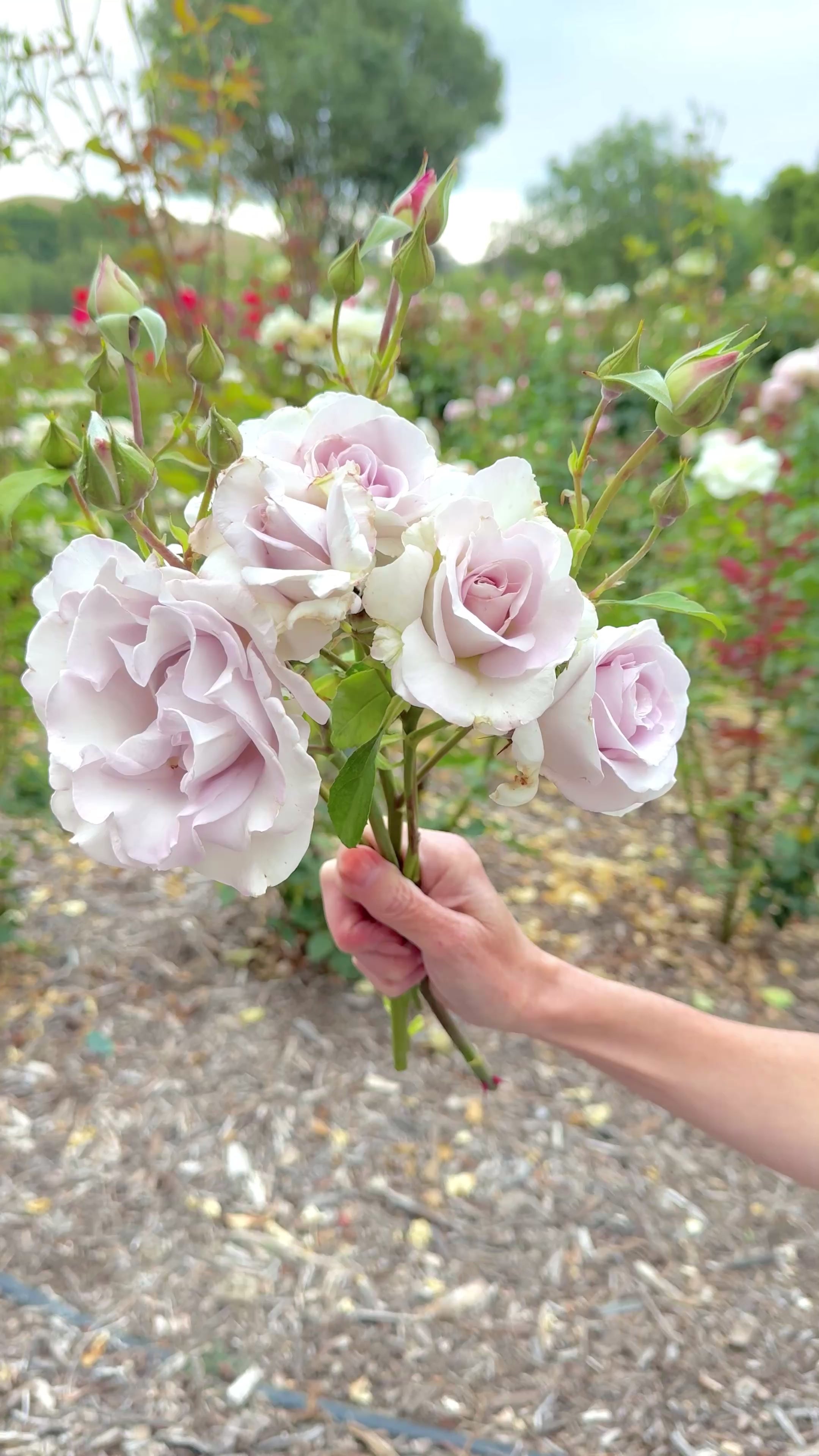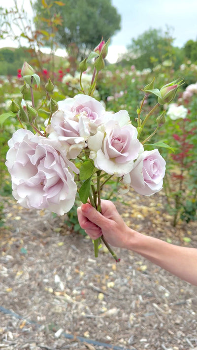 A tall hybrid tea, Stainless Steel™, is a standout in our fields. The silver and lavender blooms have an intoxicating fragrance and long, straight stems. With a long vase life, this rose is the perfect to bring inside and enjoy for several days!